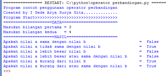 - Bool (boolean) adalan tipe data yang bernilai true atau false. Tipe data boolean sering digunakan untuk menyatakan suatu kondisi benar atau salah.